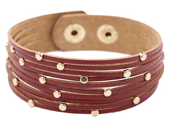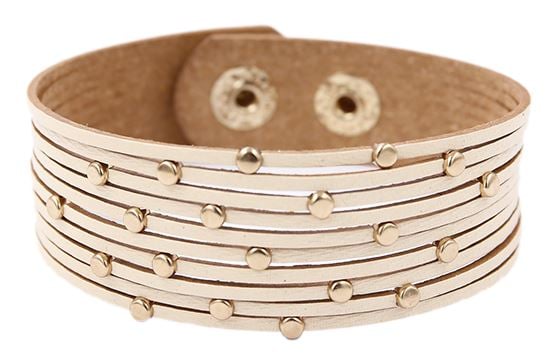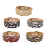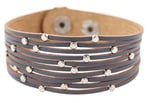 Leather Cuff Bracelet w/Metal Beads and Adjustable Snap Closures - color options
