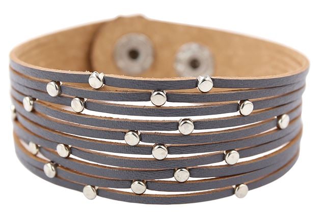 Materials: leather (length of bracelet 8.5" - width at widest point 1")